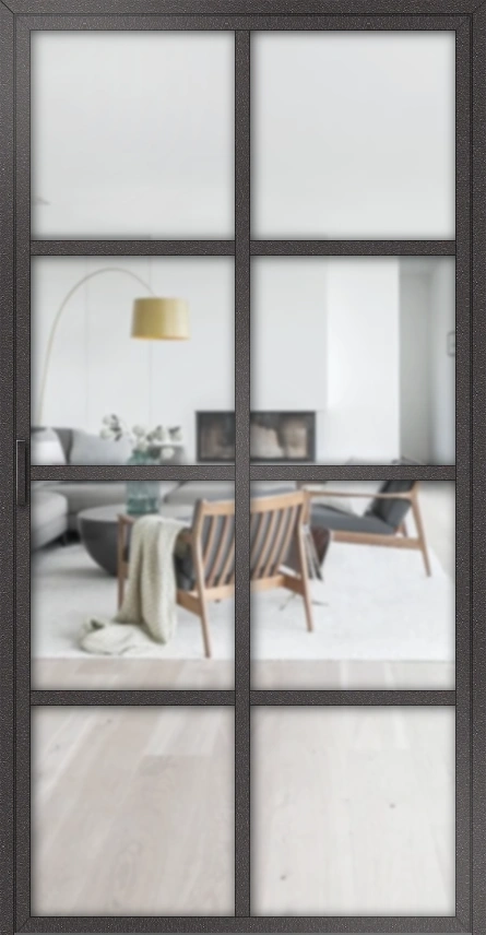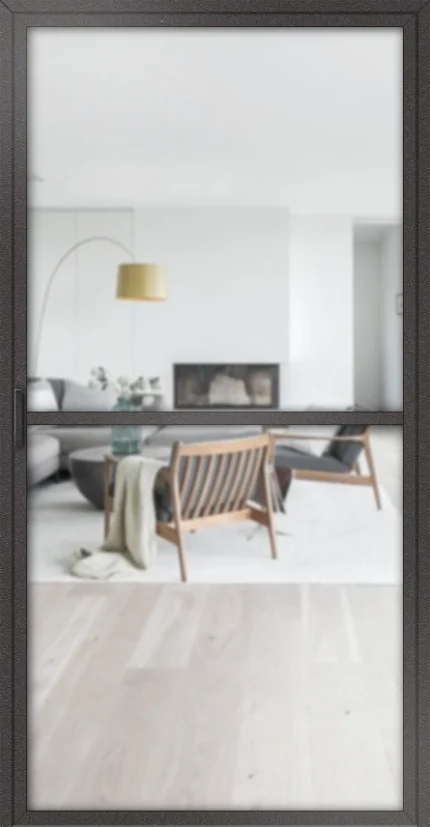 Die Kombination aus transparenten Flächen und der dunklen Metallkonstruktion schafft einen attraktiven Kontrast und unterstreicht den modernen Industriecharme. Die Tür eignet sich ideal als Raumteiler, Bürotür oder als stilvoller Übergang zwischen Wohn- und Essbereich. Sie ermöglicht Sichtverbindungen, ohne Räume vollständig zu öffnen, und sorgt so für ein luftiges, kommunikatives Wohngefühl.
